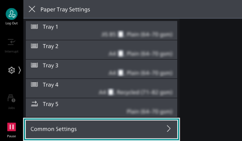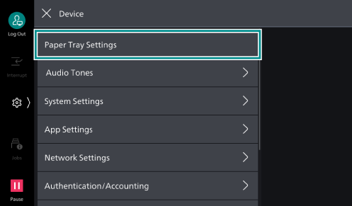 - Tap on [<] to return to the [Paper Tray Settings] screen.