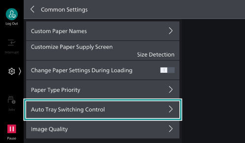 - Tap on [<] to return to the [Common Settings] screen, and tap [Auto Tray Switching Control].