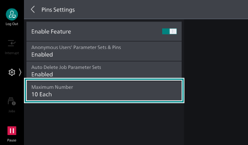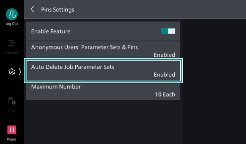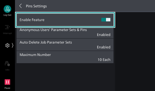The following describes how to enable the Pins feature and modify the settings regarding saving the job history as follows: