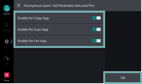 - Enable features whose history records are allowed to be retained by anonymous users, and tap on [OK].