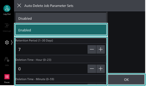 - Select [Enabled], set the retention period as well as when to delete, and tap on [OK].