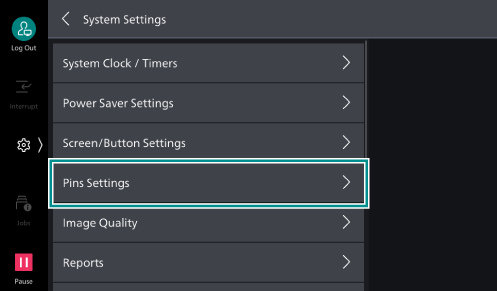 [Save as Pin] may not be displayed on the feature list screen if the following is configured in Administrator Mode.