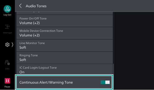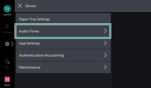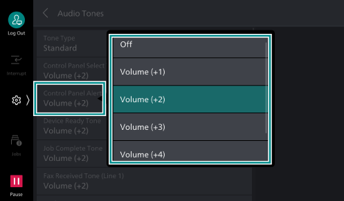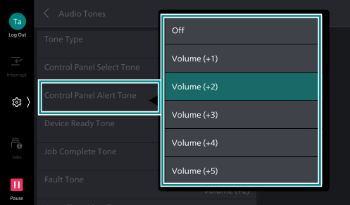 - Tap on the audio tone you want to change, and select a volume, or [Off].