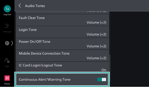 Warning Tone ]. When this option is enabled, an alarm is generated repeatedly until user intervention takes place, or the error is resolved.