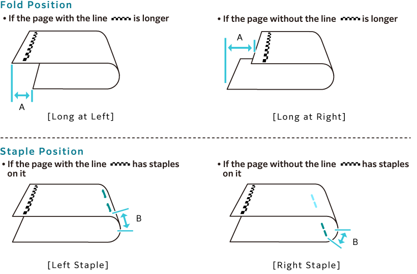 - Check the fold and staple positions on the printed sample.