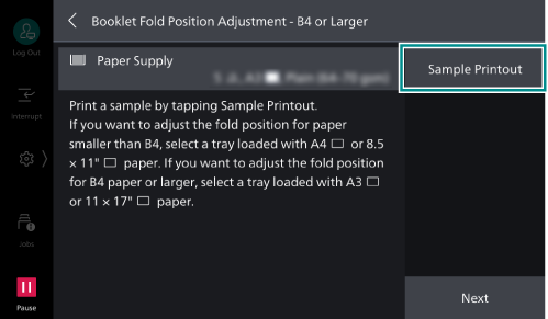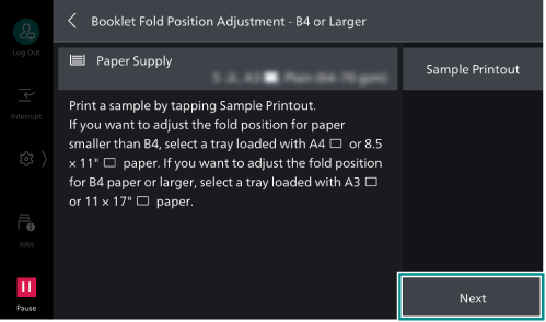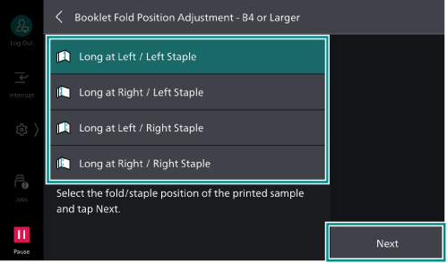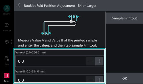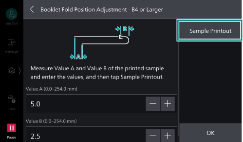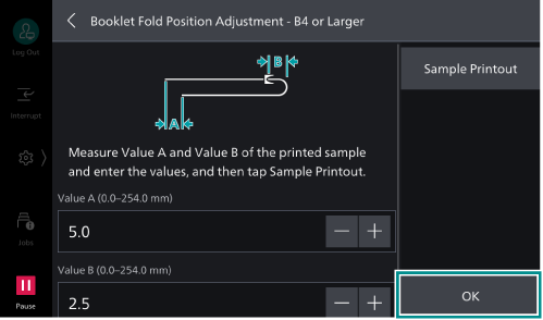 - Tap on [Booklet Fold Position Adjustment].