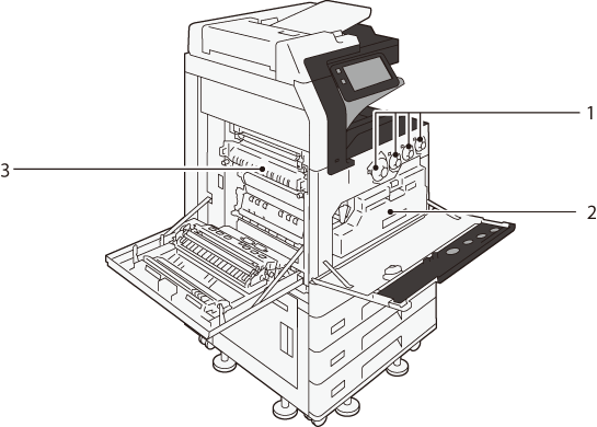 Contains toners of black (K), cyan (C), magenta (M) and yellow (Y). |