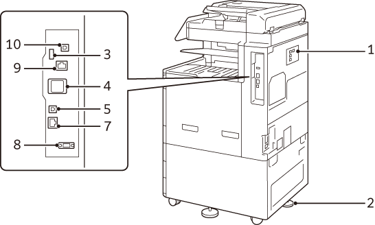Prevents the machine from toppling over. Move the machine to its installation site and then rotate this adjuster in a clockwise direction until it touches a floor. |
