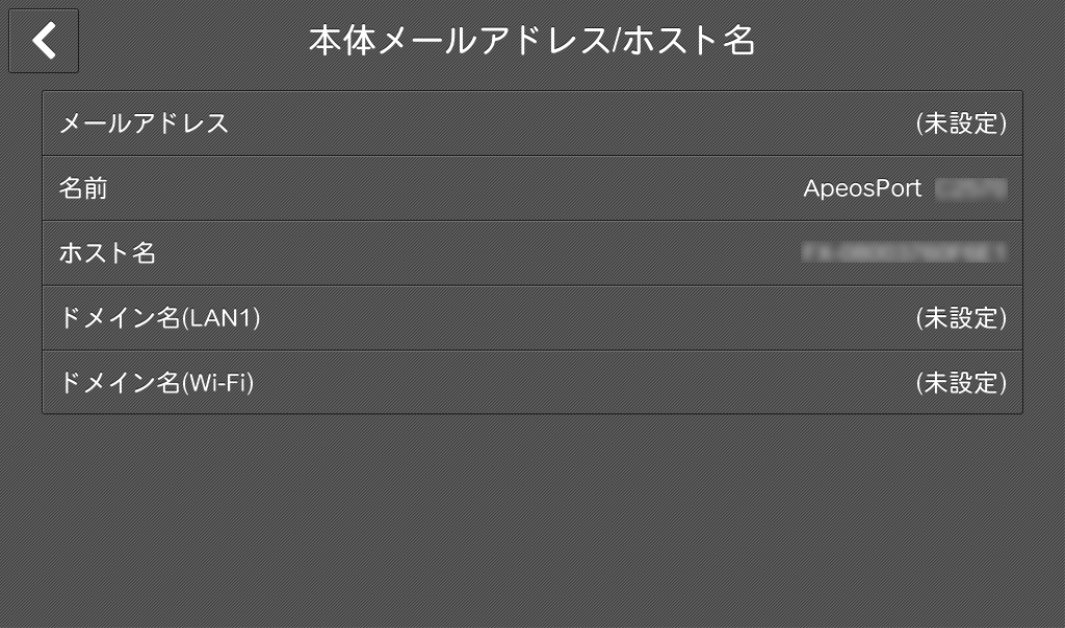 本体メールアドレス/ホスト名 メールアドレス 本機のメールアドレスを、128文字以内で入力します。 ■ SMTP受信の場合 アカウント(@マークの左側)は、任意の名称を設定できます。アドレス部(@マークの右側)には、ホスト名とドメイン名を組み合わせたものを設定します。エイリアスは設定できません。 たとえば、 · アカウント名:mymail · ホスト名:myhost · ドメイン名:example.com の場合、メールアドレスは、mymail@myhost.example.comとなります。 ■ POP3受信の場合 アカウント(@マークの左側)にはPOP3ユーザー名を、アドレス部(@マークの右側)には受信用POP3メールサーバー名を設定します。mymail@example.comのようなエイリアスも設定できます。 たとえば、 · アカウント名:mymail の場合、メールアドレスは、mymail@myhost.example.comとなります。 名前 本機の名前を32文字以内で入力します。 ホスト名 ホスト名を半角32文字以内で入力します。 補足 · SMBで通信する場合、先頭から半角15文字までをホスト名として使用します。本機を正しく識別するためには、ホスト名を半角15文字以内で設定してください。 ドメイン名 ドメイン名を64文字以内で入力します。