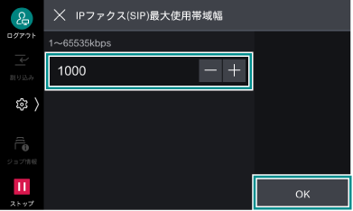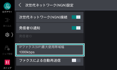 - [IPファクス(SIP)最大使用帯域幅]をタップします。