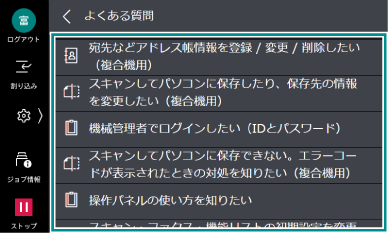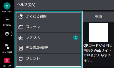 本機の操作方法を確認したり、タッチパネルに表示されたエラーコードの詳細を調べたりできます。
