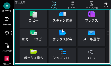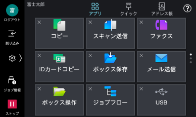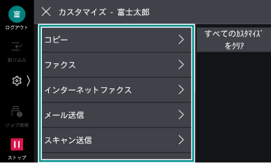 認証機能を利用している場合は、それぞれのユーザーごとにカスタマイズでき、カスタマイズした内容は個人用の設定になります。一度もカスタマイズしていない認証ユーザー、または未認証ユーザーの場合は、機械管理者モードでカスタマイズした内容が反映されます。