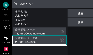 ファクスとインターネットファクスの操作画面では、ファクスとインターネットファクスの宛先の両方がアドレス帳に表示されます。機械管理者モードで