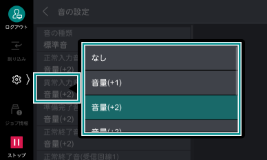操作時、エラー時に出力される音の種類と音量を設定します。