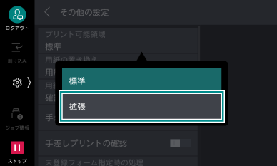 A3サイズ以下の場合、「拡張印字領域」=「印字保証領域」になります。