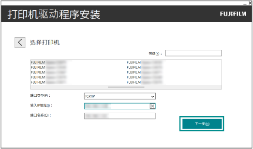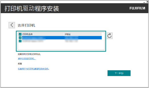 - 确认本设备的机型名称和IP地址正确,单击[下一步]。