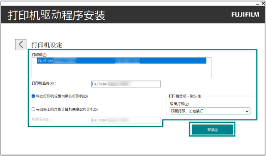 - 确认本设备名称,进行其它设定,单击[安装]。