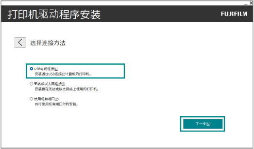 - 按照网络连接时的步骤1~3开始安装打印机驱动程序。
