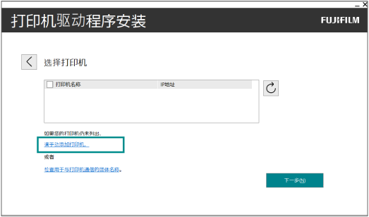 使用打印机驱动程序的安装工具,自动检测连接在网络上的本设备,安装打印机驱动程序。未自动检测出本设备时,可以手动添加本设备。