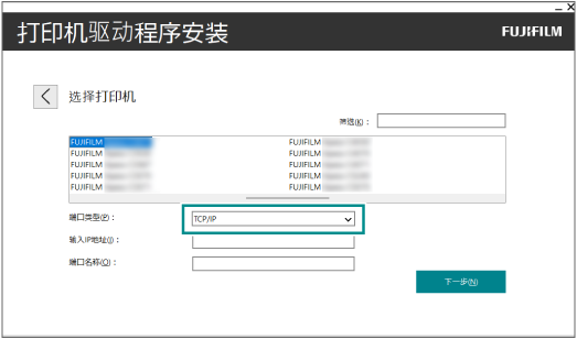 画面是在[端口类型]中选择了[TCP/IP]时的示例。