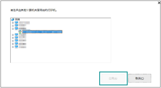 - 单击打印服务器,选择共享打印机,单击[应用]。
