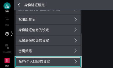 - 轻触[帐户/个人打印的设定]。