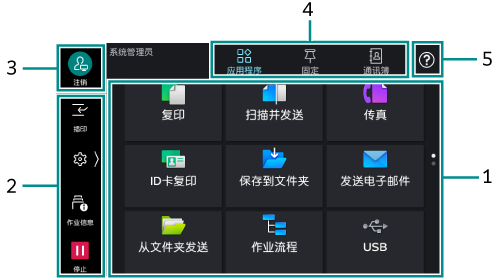 系统管理员或身份验证用户登录时,可以变更显示的应用程序和排列。详细内容请参照主屏幕的自定义。