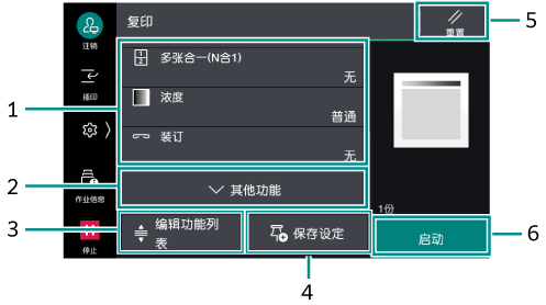 在此以复印的功能列表画面为例进行说明。