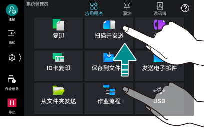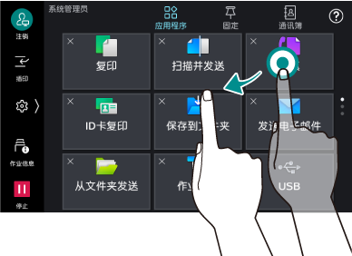 保持接触应用程序图标或菜单项目的状态。在长按的状态下,移动到目的位置后,能够变更图标的位置。
