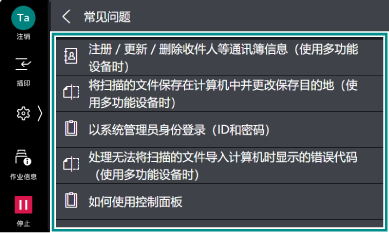 可以使用帮助确认本设备的操作方法,或调查触摸屏显示器上显示的错误代码的详细信息。