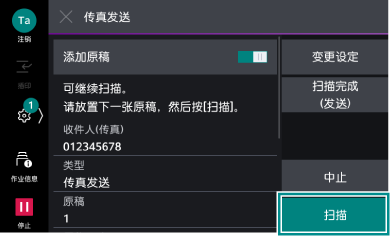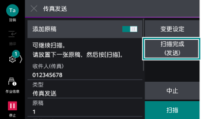 - 扫描全部原稿,轻触[扫描完成(发送)]。