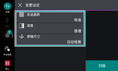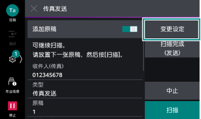 即使在功能列表中将[下一张原稿]设定为启用,也可以继续扫描原稿。