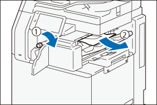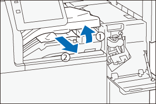 卡纸则设备停止,鸣响报警音。请根据画面指示,去除卡住的纸张。