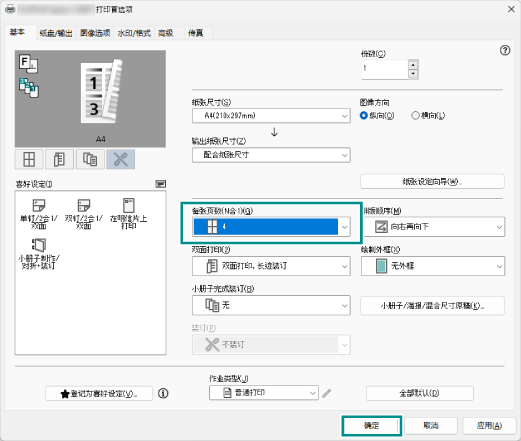 - 在[每张页数(N合1)]中选择[4],单击[确定]。