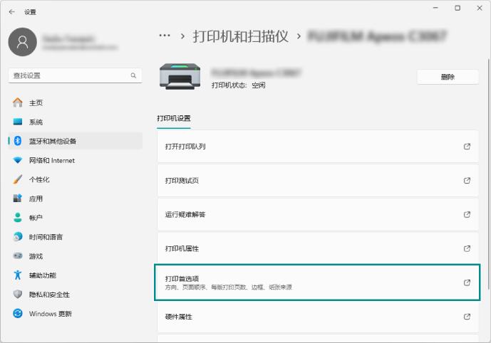 - 依次单击[开始]>[设置]>[蓝牙和其他设备]>[打印机和扫描仪]。