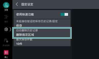 说明在系统管理员模式下启用固定功能,变更与保存作业历史记录相关的下列设定的步骤。