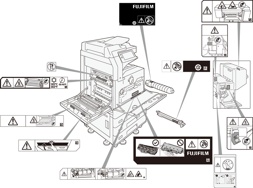 警告及注意标签的粘贴位置