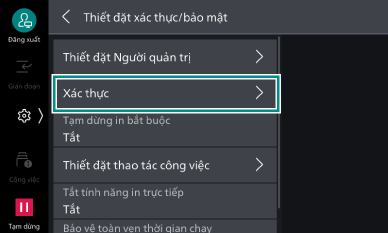 - Nhấp vào [Thiết đặt xác thực/