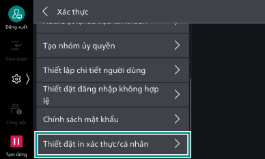 Khi sử dụng In xác thực cá nhân, hãy thiết đặt phương thức xác thực của thiết bị này thành xác thực trên thiết bị.
