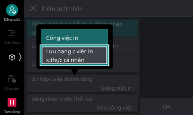 Thiết đặt lưu tất cả các công việc vào In xác thực cá nhân