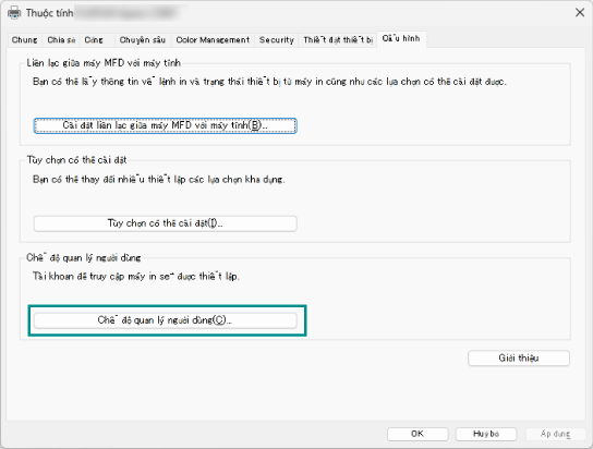 - Nhấp vào [Chế độ quản lý người dùng].