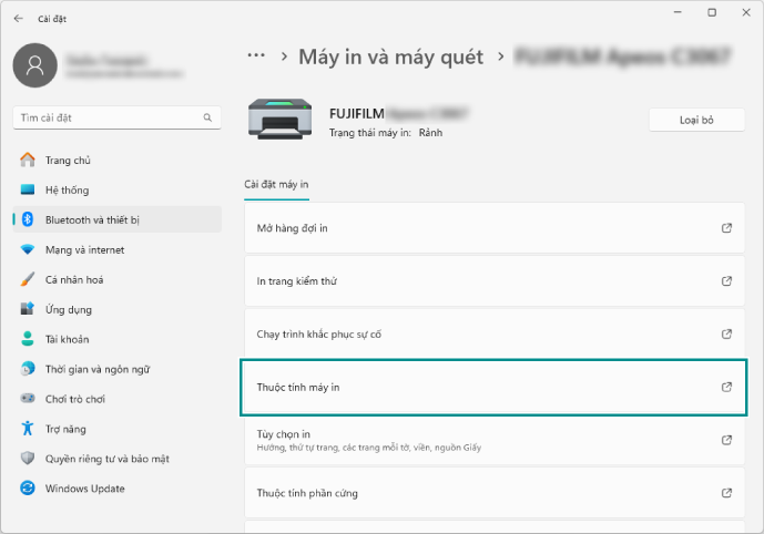 - Nhấp vào thiết bị này từ [Bắt đầu] > [Cài đặt] > [Bluetooth và thiết bị] > [Máy in và máy quét].