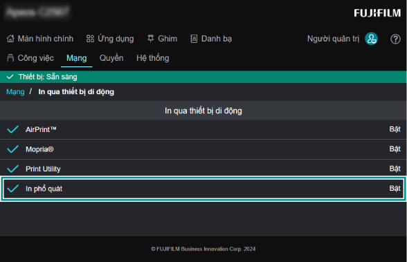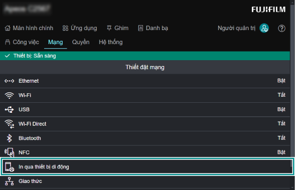 Cần thiết đặt Internet Services để sử dụng chức năng NFC trong Print Utility.
