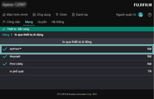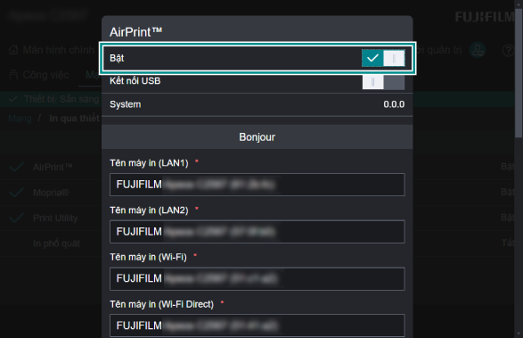 Thiết đặt AirPrint được thực hiện trên trình duyệt web.