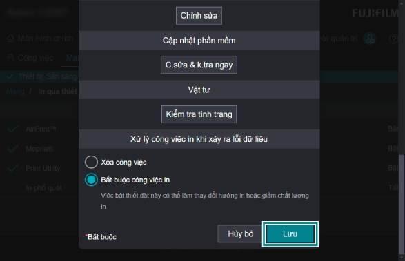 - Thiết đặt các mục nếu cần, nhấp vào [Lưu].