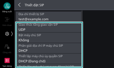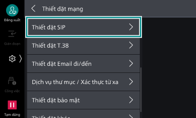 - Nhấp vào [Thiết đặt SIP] trên màn hình [Thiết đặt mạng].