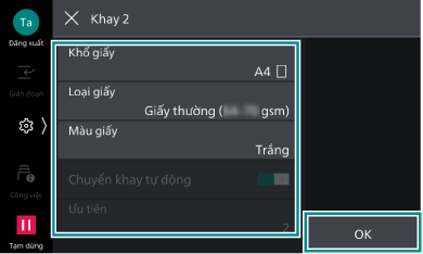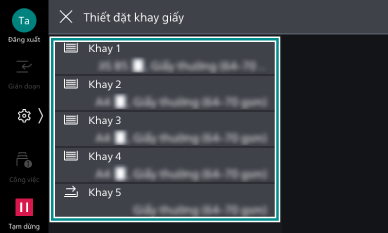 Để biết cách thay đổi thiết đặt khay giấy, vui lòng tham khảo Thay đổi thiết đặt khay giấy.