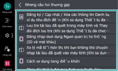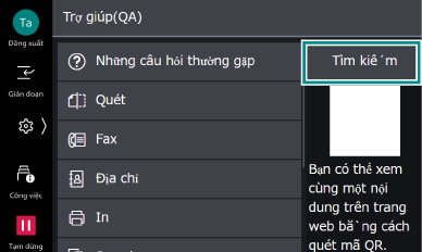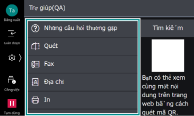 Bạn có thể xác nhận phương pháp thao tác của thiết bị này hoặc tìm hiểu chi tiết của mã lỗi hiển thị trên bảng cảm ứng.