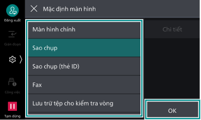 - Chọn mục muốn làm màn hình ban đầu và nhấp vào [OK].
