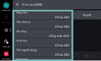 - Nhấp vào [SMB], [FTP], hoặc [SFTP] tương ứng với đích lưu.